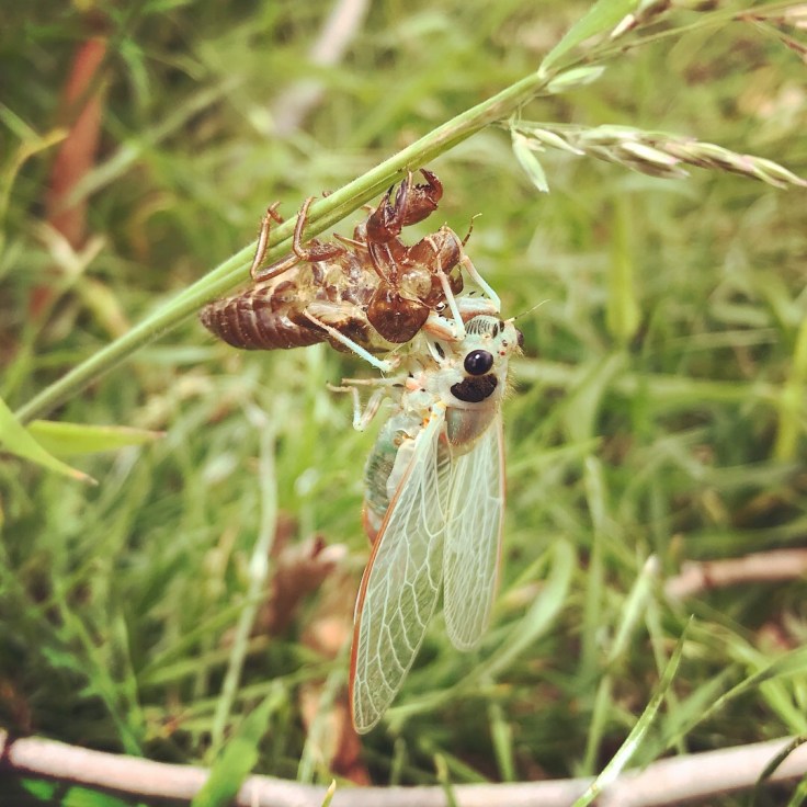 When we arrived and started walking around checking out the ground, to see where the best spot to put the camper was, we noticed little holes in the earth everywhere. Great I thought, ants. Turns out we’d arrived on the morning of a mass emergence of cicada, these were our camp mates for the rest of the week. Along with every fly in the south of the state.