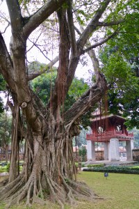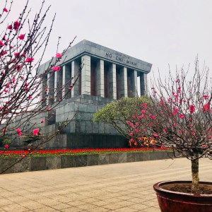 Visited the Confucius school and then the Ho Chi Minh mausoleum. It was a long but swiftly moving queue to see him. No bags, no water bottles, no bare shoulders or knees, no talking, no smiling, no cameras allowed and definitely don’t put your hands in your pockets. I saw a soldier yank a few peoples hands out of their pockets. The embalmed corpse of Ho Chi Minh didn’t look very real to me, almost as if he was made of wax, but there was no shine to him so maybe not. On leaving the tomb a military man approached me, directing my companions and I to stop and smile at a tree in blossom, while he took our picture. So, now I can say I’ve been featured in a communist publication.