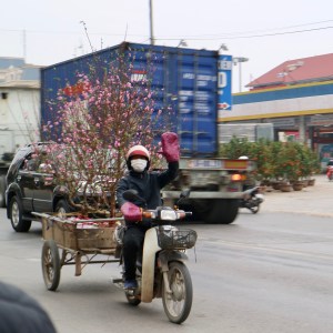 I’m woken by a crowing rooster, from the fifth storey apartments opposite. After breakfasting on a unique mix of east and west, baked beans with a croissant and a side of fish soup, I head off on the long drive to Hallong Bay. My guide is eager to show me preparation for Têt, walking in and around traffic to meet fruit trees sellers along the road.