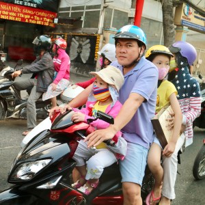 While we are doing this our driver had been called away to help another driver a few kilometres down the road, he was picked up on a scooter without us knowing, and was not able to return back to us in time. But we had his van and his keys. After much debate (aka listening to the guide shout at the driver on his mobile) we decided to drive to him, because waiting for him to get to us in Hanoi traffic was going to be at least an hour. Guess who the only person in the group that could drive the van was? Or drive stick as they would say in the states. It was the most hair raising driving experience of my life; driving through Hanoi. With thousands or maybe even millions of scooters on the road, being a large van on the road was like being a shark amongst a school of fish. They surge past you carrying at least two passengers each, or a large tree in a pot.